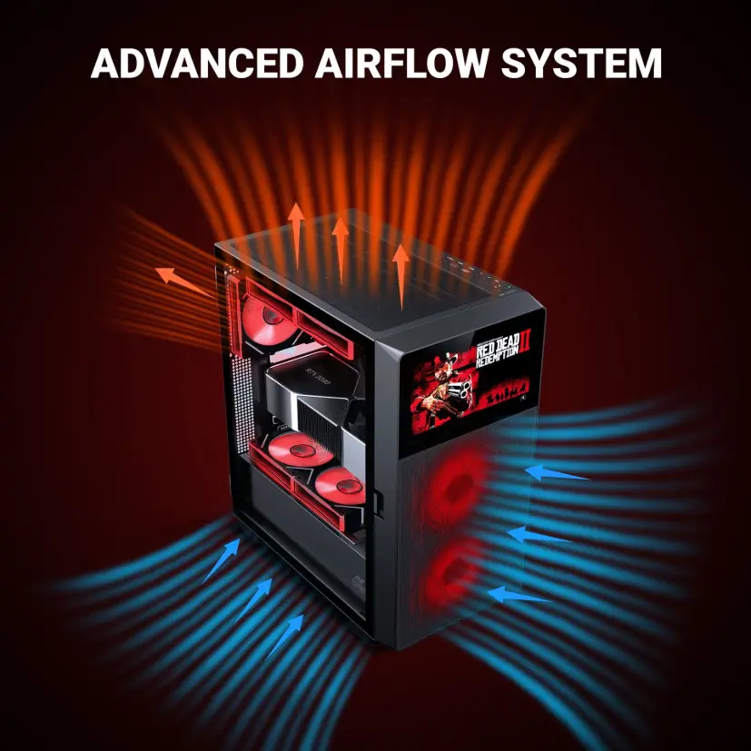 The mesh front panel with 2 front fans and 1 ARGB rear fan ensures efficient airflow to maintain ideal temperatures during gaming or multitasking.