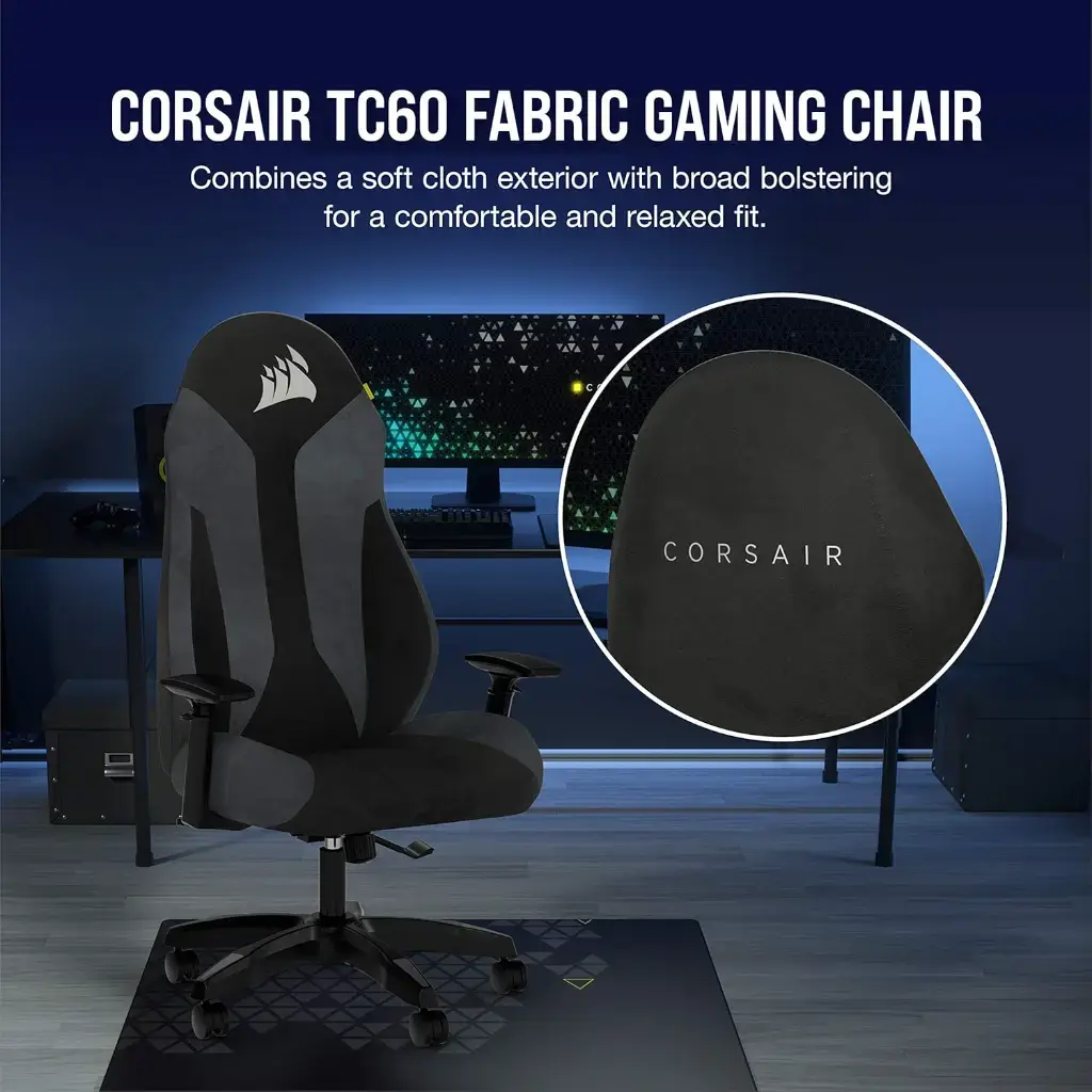 CORSAIR TC60 Fabric Gaming Chair – Relaxed Fit, Grey