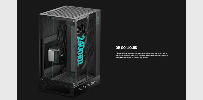 Ideal for Mini-ITX and Micro-ATX motherboards, the CH170 Digital is perfect for gamers, streamers, and PC enthusiasts who need a powerful build in a compact space.