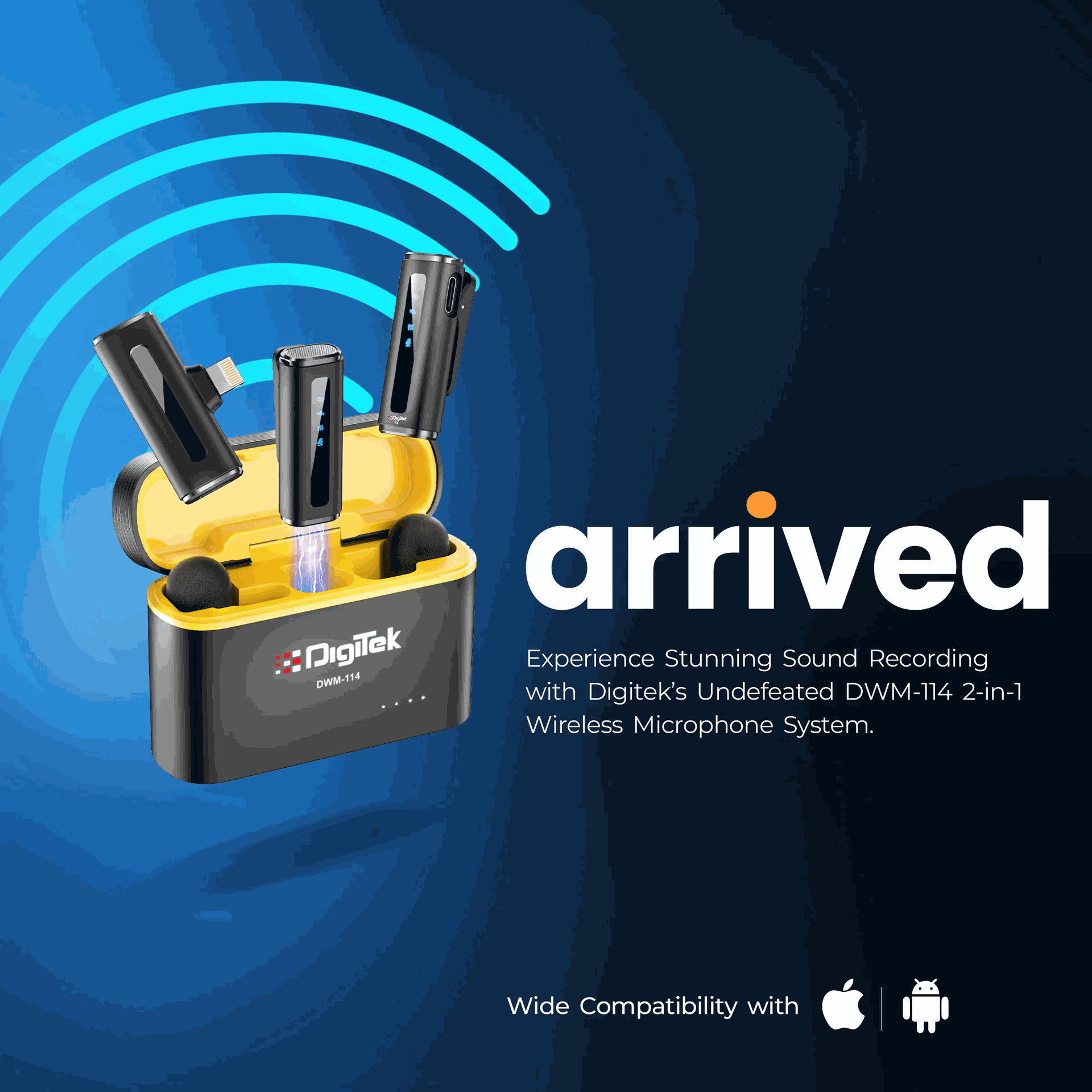 Upgrade your wireless recording setup with the Digitek® DWM-114 2-in-1 Wireless Microphone – perfect for vlogs, interviews, streaming, and professional content creation.