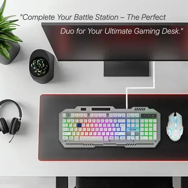The full-size keyboard features 104 keys with a premium silver metal plate backing and durable 1.5 m braided cable with gold-plated USB—ensuring reliability and responsiveness for intense gaming sessions Computech StoreMD Computers.