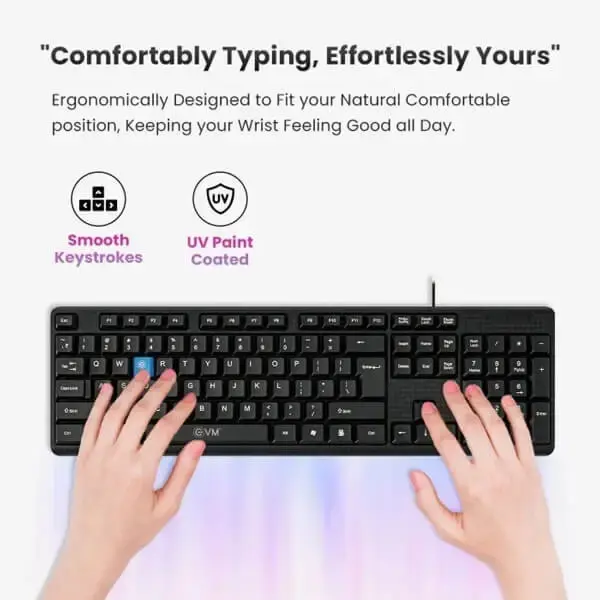 The EVM WDK 216 Wired Keyboard Black is the ideal choice for anyone seeking a durable, ergonomic, and affordable wired keyboard. Whether you’re working in the office, learning online, or browsing at home, this keyboard ensures comfort and efficiency in every keystroke.