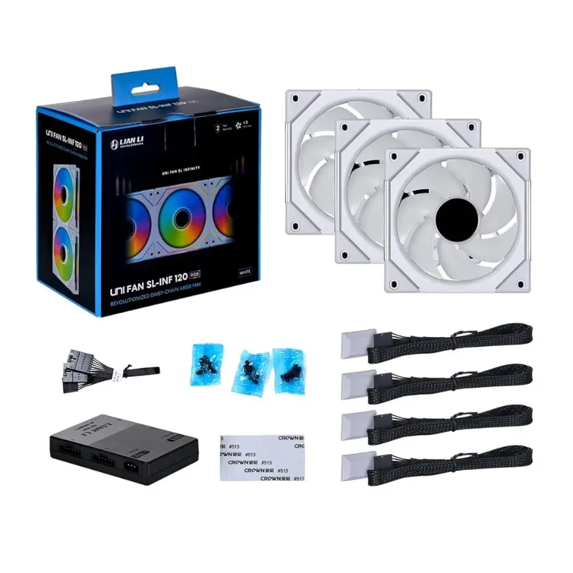The Lian Li UNI Fan SL Infinity 120 RGB is a high-performance RGB case fan designed for PC enthusiasts and gamers seeking premium airflow with stunning lighting effects. The triple pack configuration allows enhanced cooling for mid-tower and full-tower cases, while white finishes add a modern aesthetic to your build.