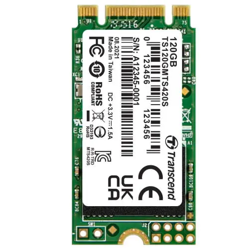 The Transcend MTS420S (TS120GMTS420S) is a high-performance 120GB M.2 SATA SSD designed for ultra-slim laptops, mini PCs, and embedded systems. Featuring a SATA III interface and TLC NAND flash, this M.2 2242 SSD delivers fast, reliable, and energy-efficient storage, ideal for operating systems, essential applications, and moderate data storage.