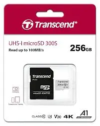 Transcend TS256GUSD300S-A 256GB microSDXC – UHS-I U3, A1 (with Adapter)