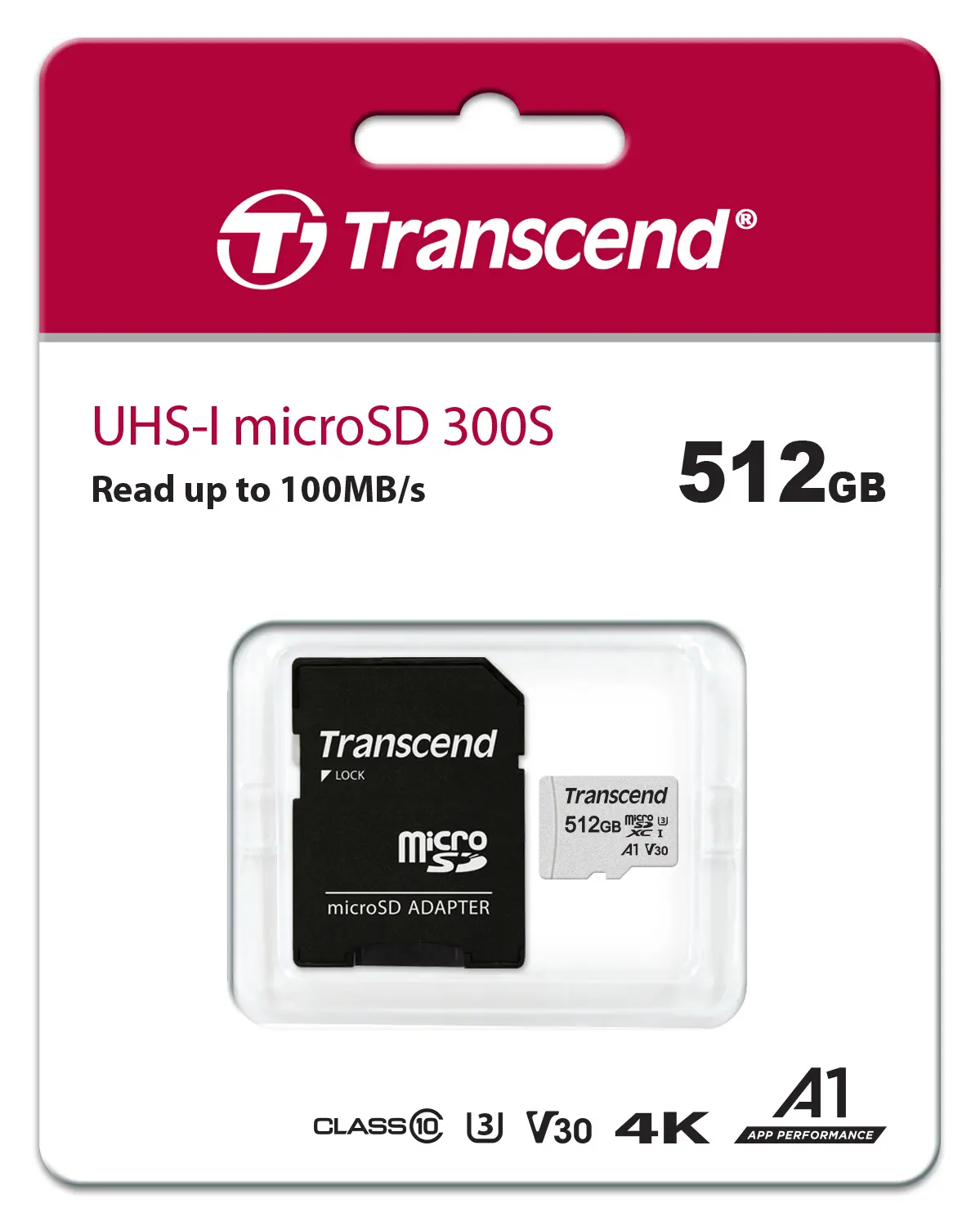 Transcend TS512GUSD300S-A 512GB microSD Card – UHS-I U3 A1 with Adapter